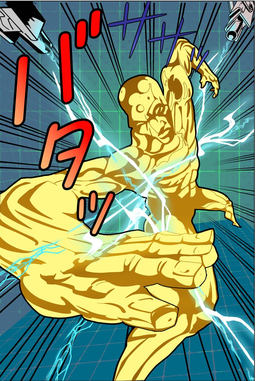 The Golden Man is essentially a X men story before X-men, and I imagine it definitely had a influence on Stan Lee. Cris, is a young man who after the fallout of WW3 has a body made of gold and a strange ability to be able to perceive multiple moments of time and space all existing at the same time and pick and choose which one he participates in. Cris gets captured by the DCA (a fictional stand in for the FBI/CIA) and is arrested but because of this ability to perceive time and space independently from his participation in this world he escapes and is practically untouchable: